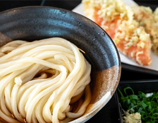 地元では知らない人がいないほどの地元を代表する本格手打ちうどん店。エビが入った丼を覆う大きな天ぷらが印象的な「天ぷらうどん」がおすすめ!