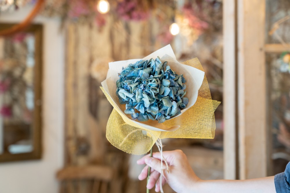 紫雲出山的紫陽花製成的乾燥花飾品。
