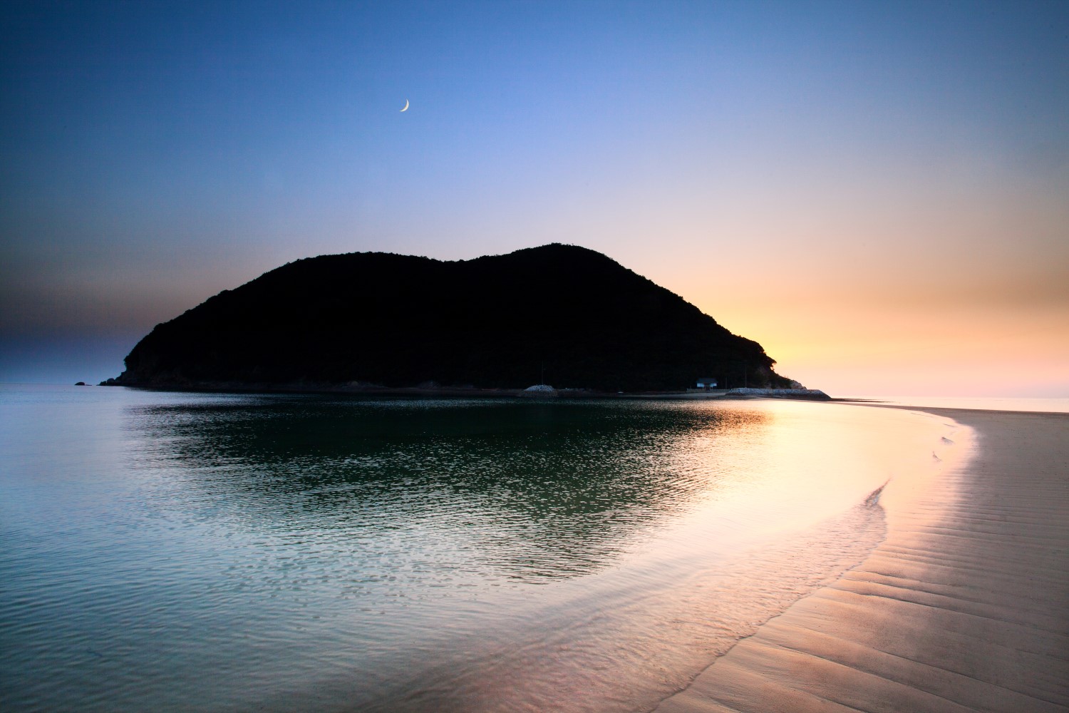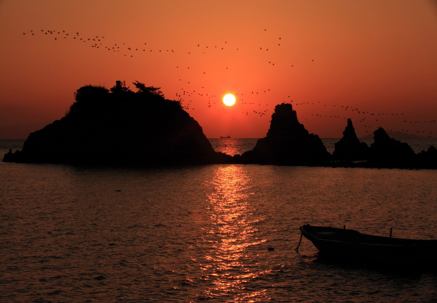鴨之越 (Kamonokoshi) 是傳說中浦島太郎救起海龜的海灘。乾潮時可以沿著露出的沙洲步行到對岸的丸山島。它也是著名的日落勝地,特別是在每年的2月和10月常有機會伴著傳說的神秘感,一窺幸運的達摩夕日 (或稱 Omega Sunset)。