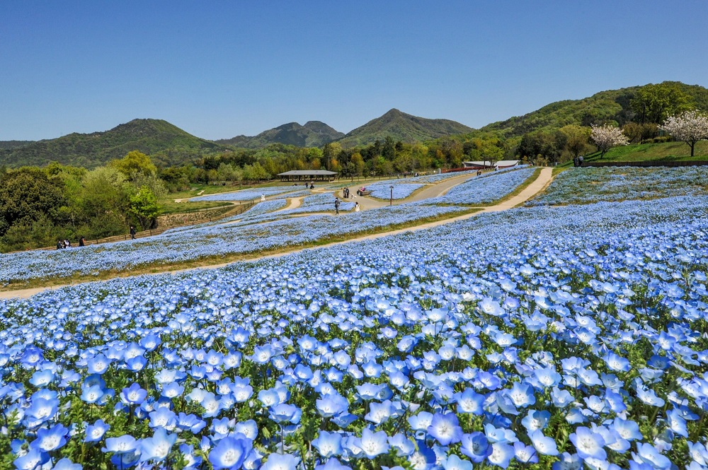 【香川縣・滿濃町】四國唯一的國營公園,沿著名勝満濃池畔延伸設立。園內四季花海盛開,冬天則有夜間點燈活動,光彩繽紛奪目。草坪廣場、大型遊樂設施、林地復育的自然生態園等一應俱全,全家老少都能在此盡情的玩樂,度過一日時光。