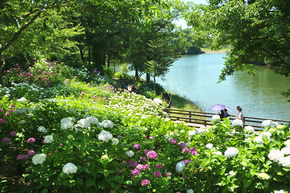 【開花時期】櫻花(3月中旬~4月上旬)、粉蝶花(4月上旬~下旬)、紫陽花(6月上旬~下旬)、地膚(7月中旬~10月下旬)、波斯菊(9月中旬~10月下旬)