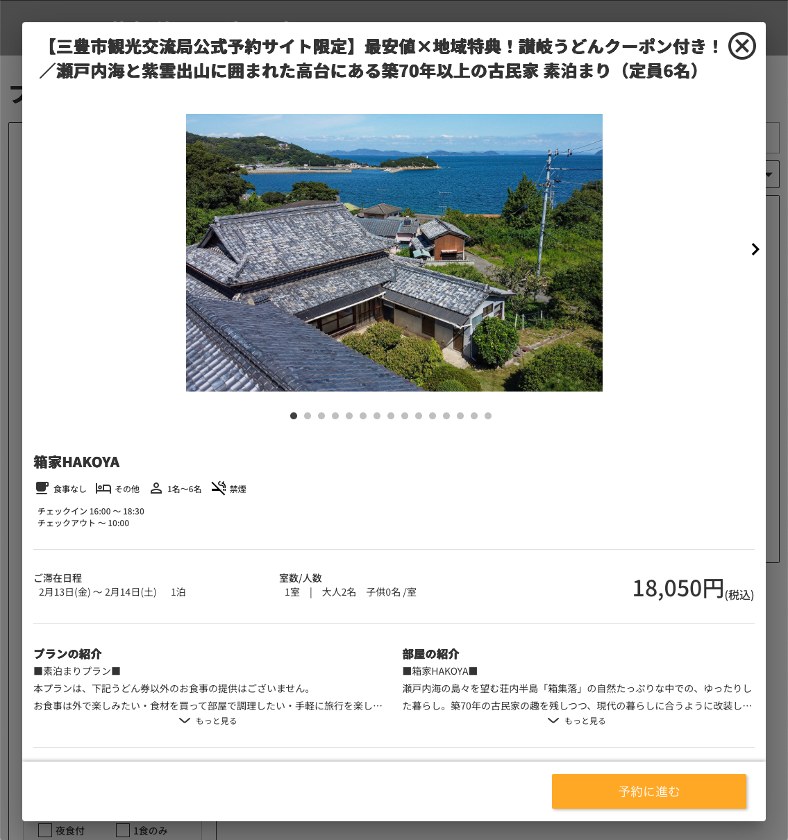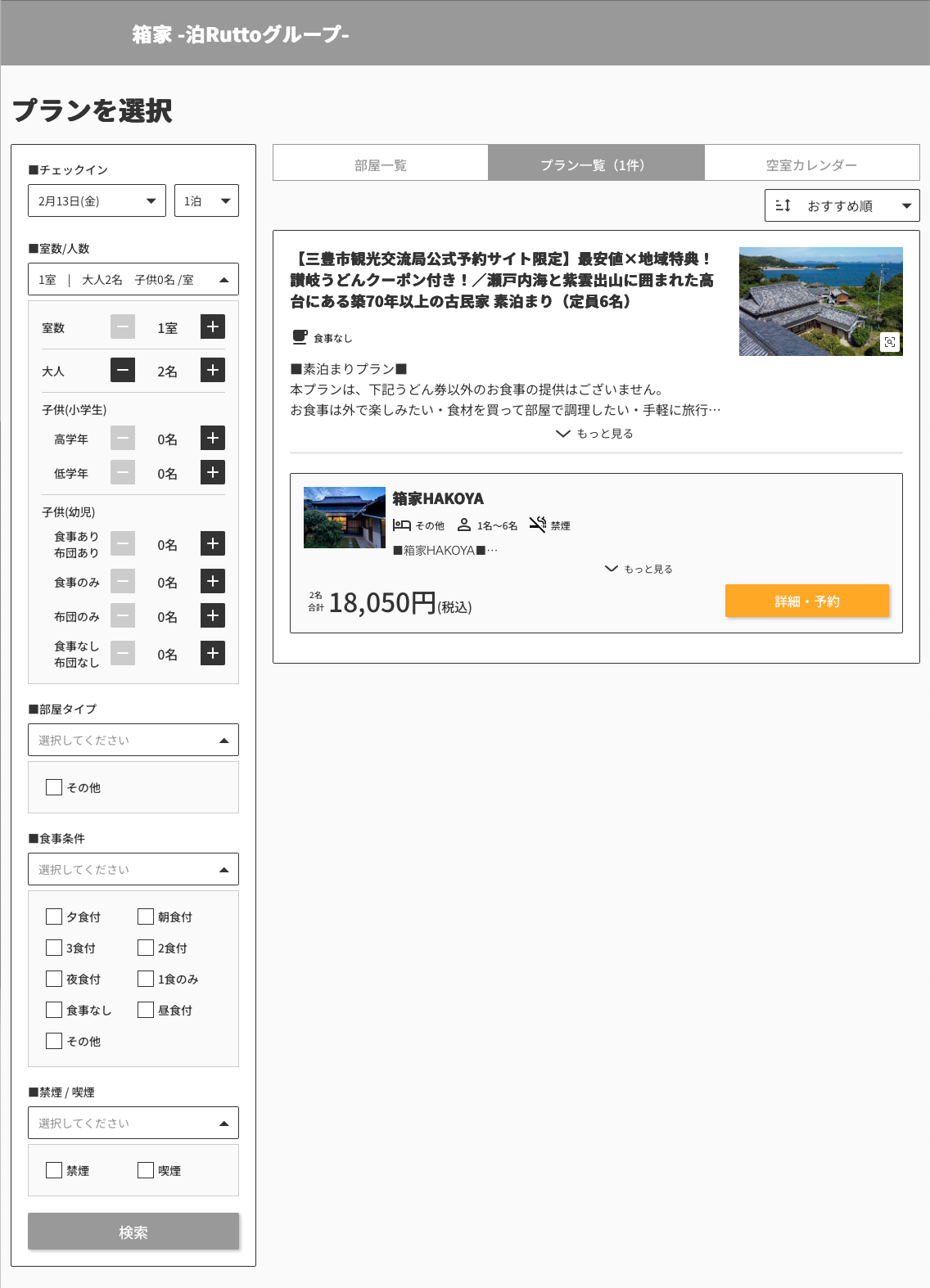 輸入完條件後,點選「検索」按鈕,就會列出符合條件的住宿方案。