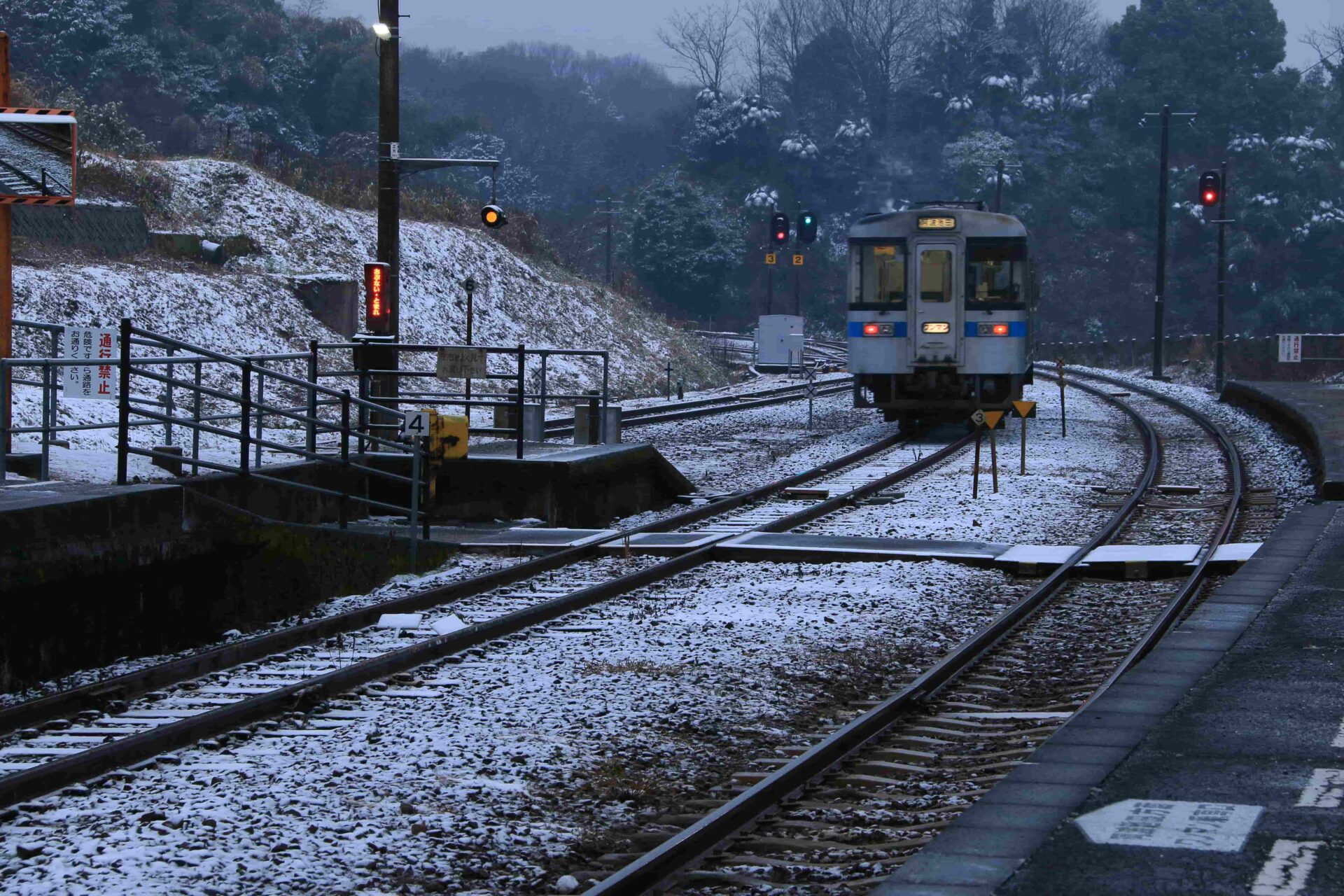 矢野 秀明(三豊市)「雪の始発列車」