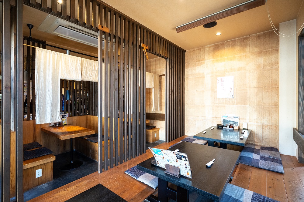 Just a two-minute walk from JR Takase Station, this restaurant offers authentic kappo cuisine at reasonable prices. The calm, welcoming interior includes counter seating, horigotatsu seating, and tables, making it easy to use for many occasions. It can also accommodate groups of up to 40 people, and course meals are available with advance reservation.