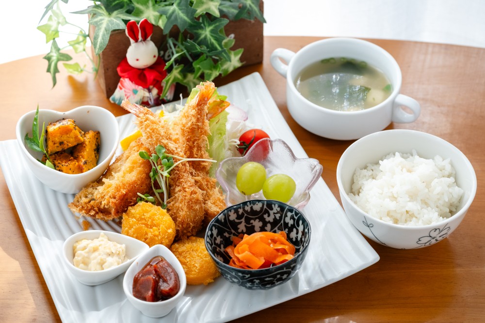 健康志向でメニューは全て手作り!特に人気は旬の食材を生かした8種類の味覚が楽しめる週替わりの三喜遊御膳。砂糖不使用、生麹と天然水のみで作られた甘酒も絶品!旨味たっぷりの自慢の逸品、さぬき名物骨付き鳥やチーズ焼きカレー、ラスクなどはテイクアウトも可能。