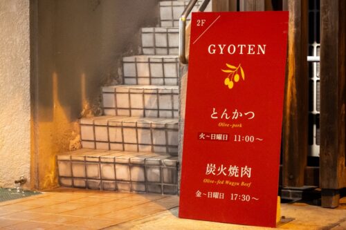 - 2階にランチ「とんかつ 行天」、夜限定の「炭火焼肉 行天」